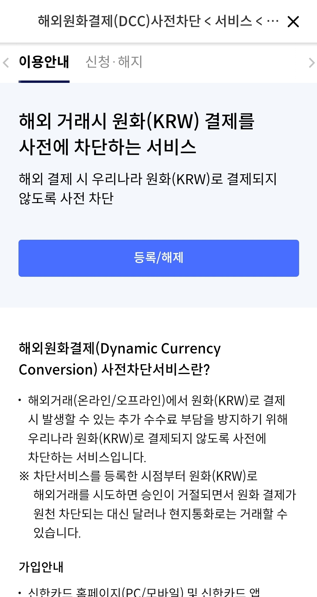 신한카드 해외 원화결제(DCC) 차단방법